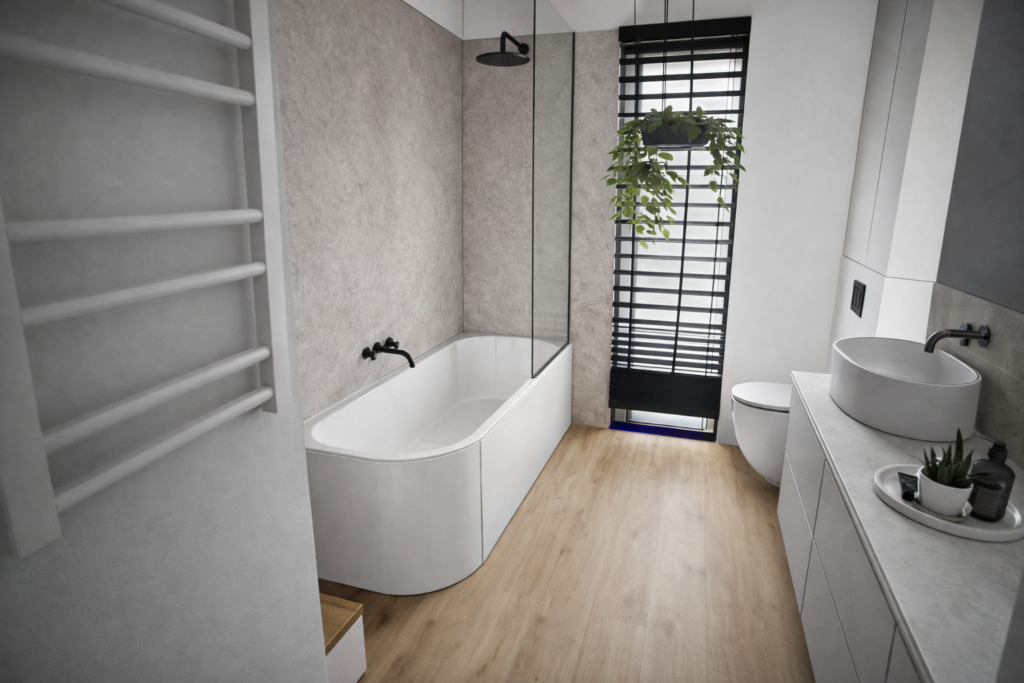 Na podstawie gotowych modeli 3D przygotowywane są również wizualizacje generowane z wykorzystaniem AI, co pozwala jeszcze lepiej zobaczyć finalny efekt wnętrz.