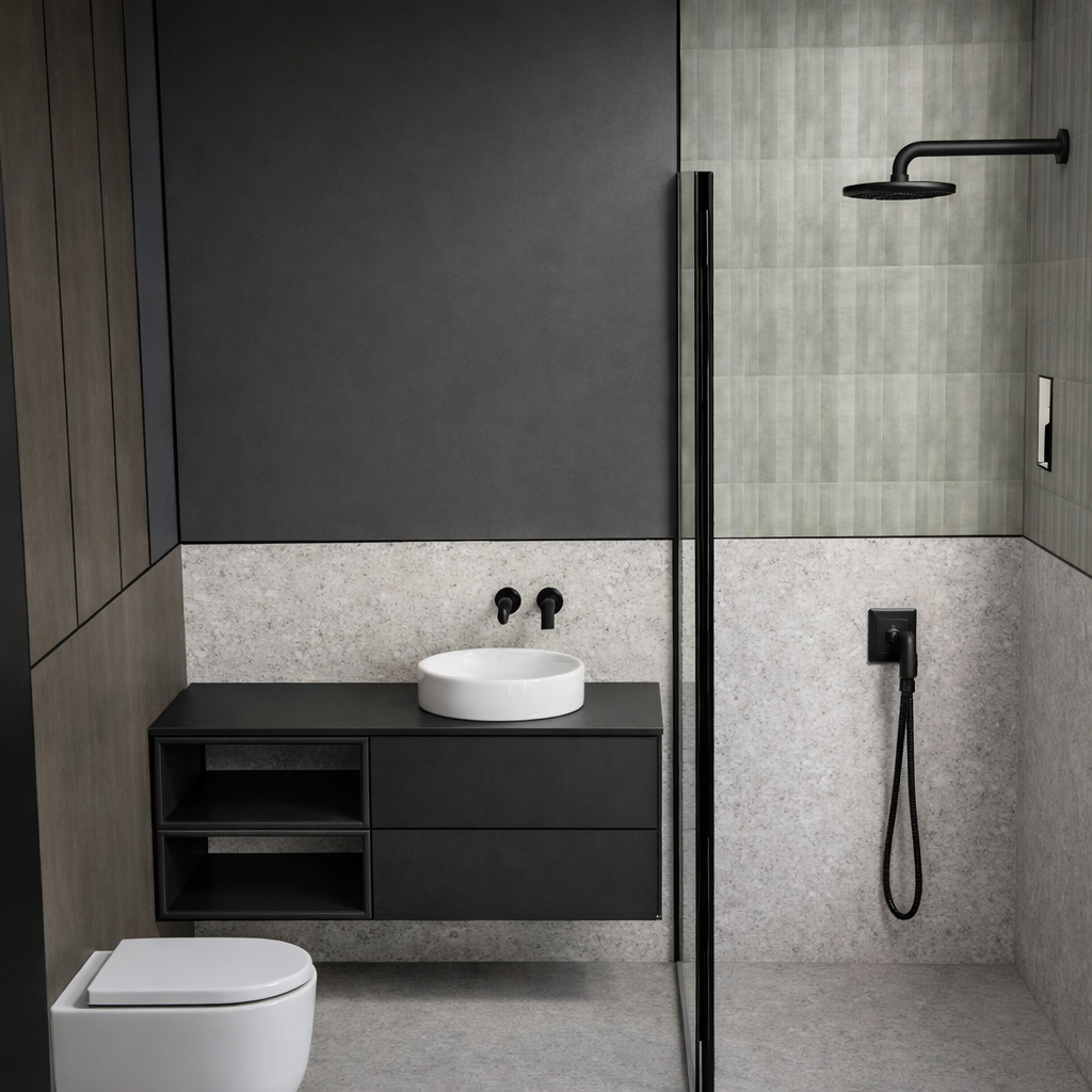 Projekt obejmuje dwie łazienki: